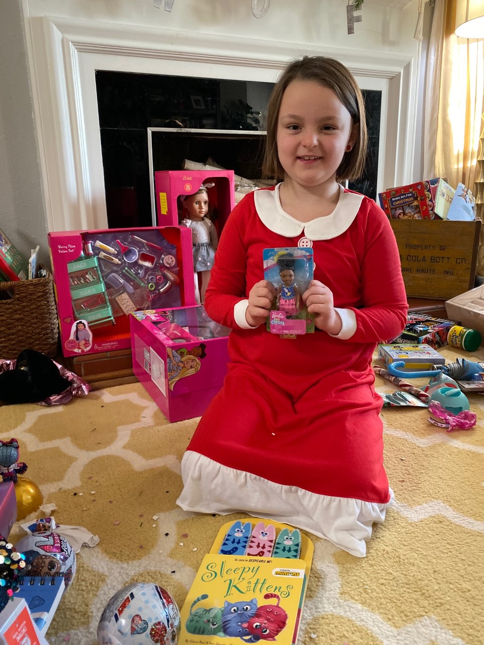 Olive was THRILLED to get American girl dolls and accessories plus some surprises. She couldn't open her gifts fast enough.