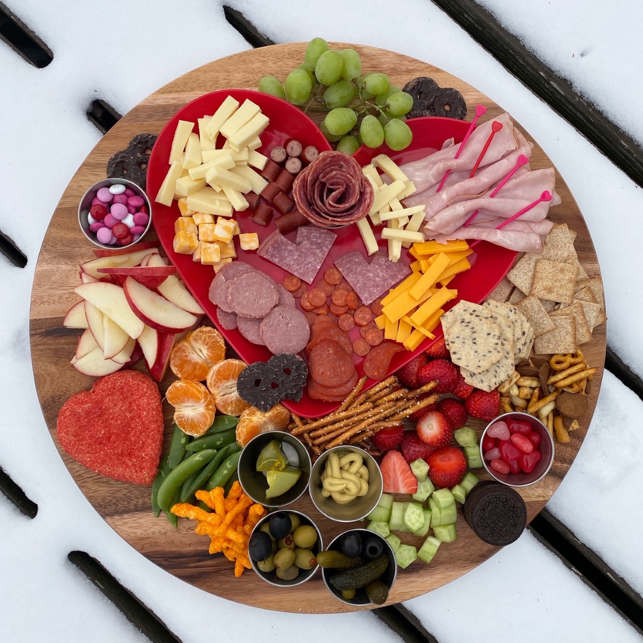 I made a Valentine charcuterie board. I think it was my best yet - a salami rose, lots of red and pink foods, valentine treats, heart food picks and all of our usual board favorites. My family LOVED it.
