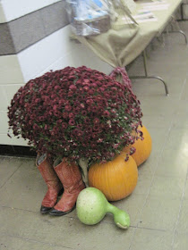 Giant mums, pumpkins, gourds & cowboy boots everywhere.