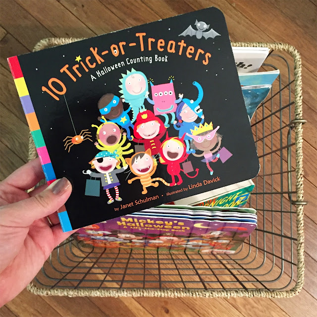 I still need to decorate my house for Halloween, but our Halloween books are out. I always pick out a new book or two for each holiday for the kids. We read them all month long and get pumped up for the holiday. 10 Trick or Treaters is a really cute counting book. I also ordered Room on a Broom after SEVERAL people (Jo & Jess!) recommended it. I keep a basket of holiday books by our fireplace and we switch them out monthly. The teacher in me loves this tradition and I hope my kids grow up loving to read books :)