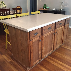 We love having a large island and these bright yellow bar stools make me so happy.  We use this spot all day long.  We do art projects here, we craft here, we bake here and I fold laundry here.  I have always wanted a kitchen with an island.