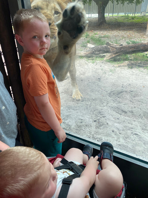 Yay for trip recap posts! :) I'm so glad you had a good trip and were able to stay at such a lovely place! We've been watching Pool Kings on Discovery+ and the pics of the pool remind me of some we've seen on the shows. Love those waterfalls and features at the pool - I bet that was so much fun! Those pics of Fletcher with the lion are awesome, and he looks so chill about it! What a cutie. :)