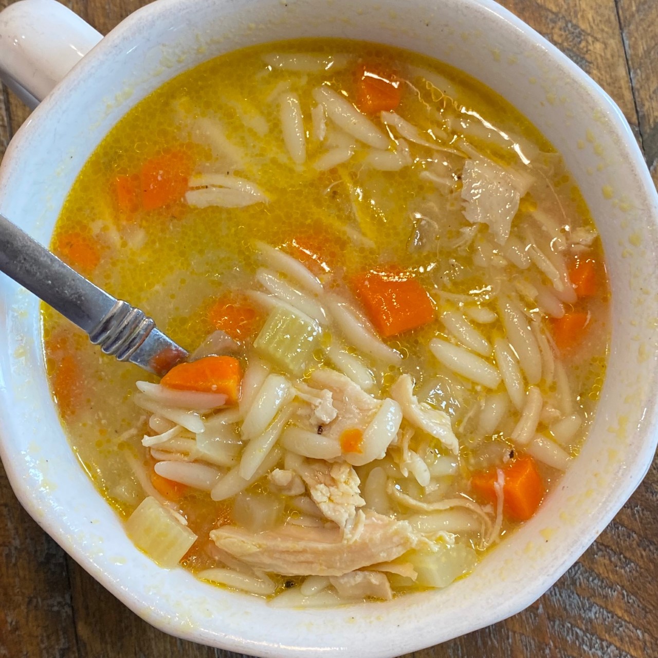 I was in the mood for some comfort food this week. My crew loves chicken noodle soup and subbing orzo for traditional noodles is a fun twist. It's bigger than rice and it holds together nicely in soups.