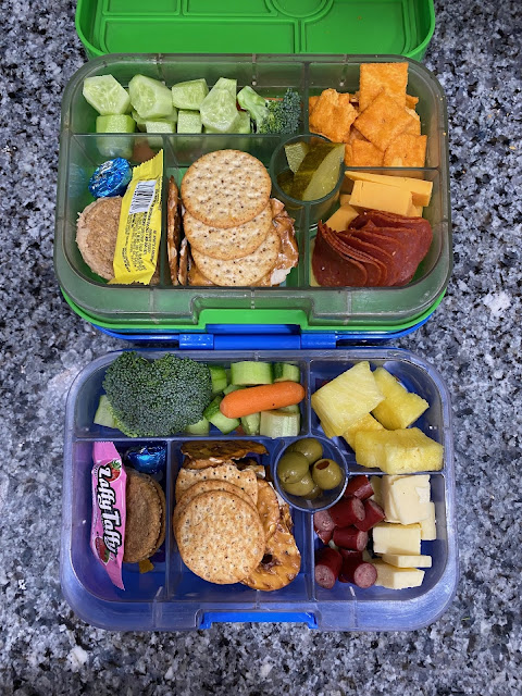 Kevin was at a work dinner last week so I hit the easy button on dinner. I heated up some frozen breadsticks and grabbed a few meats, cheeses, salty snacks, fruits and veggies. It's less variety than my typical boards, but I thought it might make this kind of meal more approachable to a lot of you.